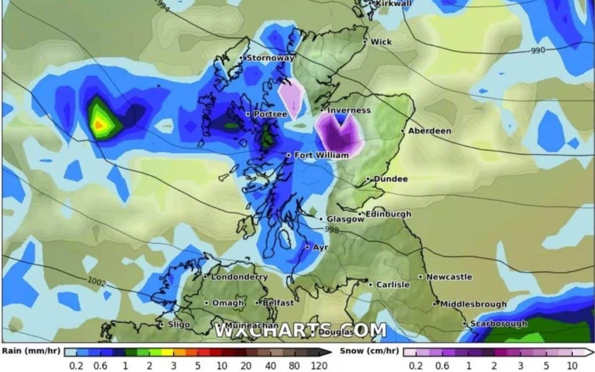 Much of the UK’s lower regions are expected to experience heavy rainfall rather than snow. However, the higher altitudes in Scotland are in line to witness the first significant snowfall of the season.